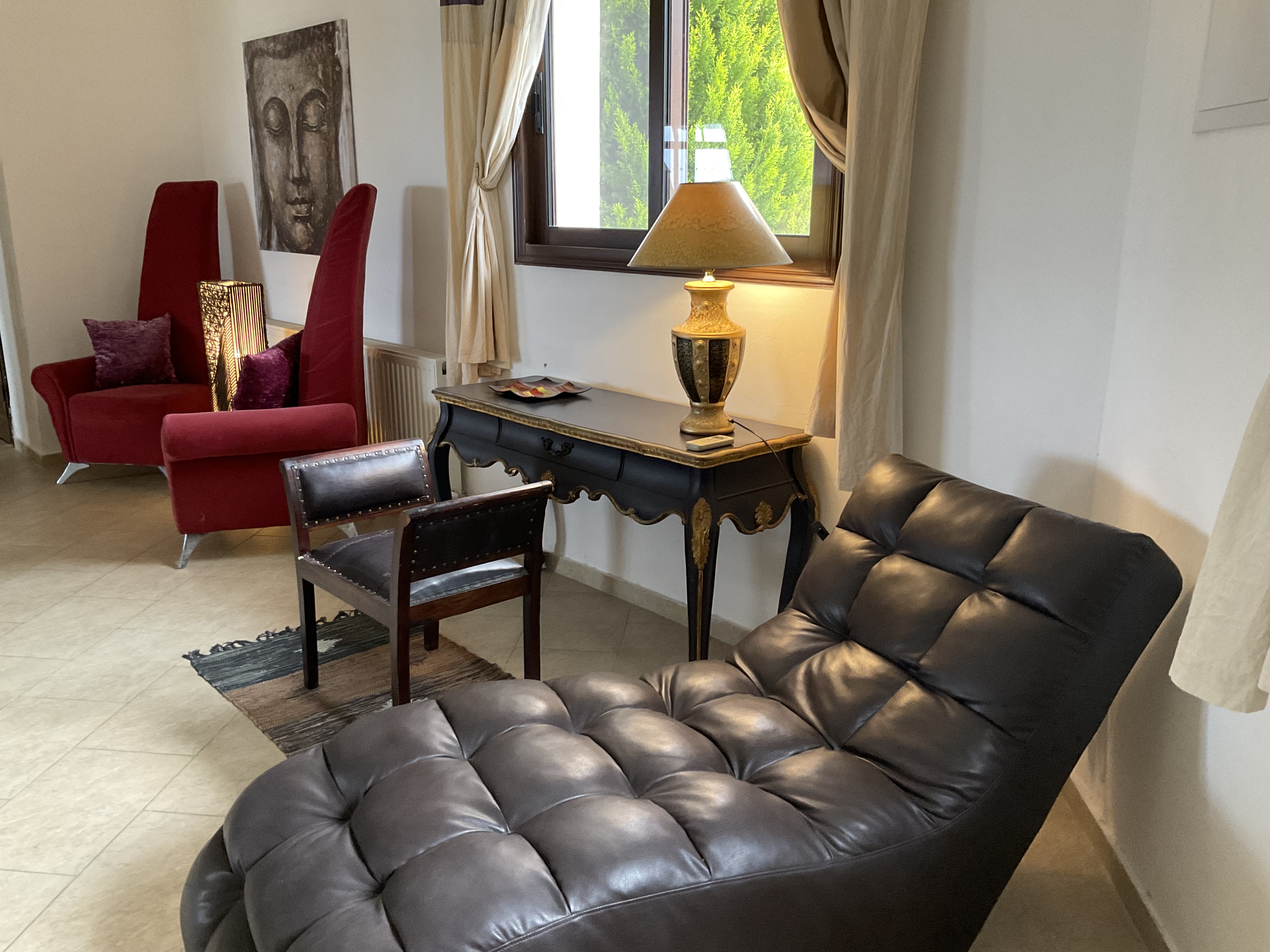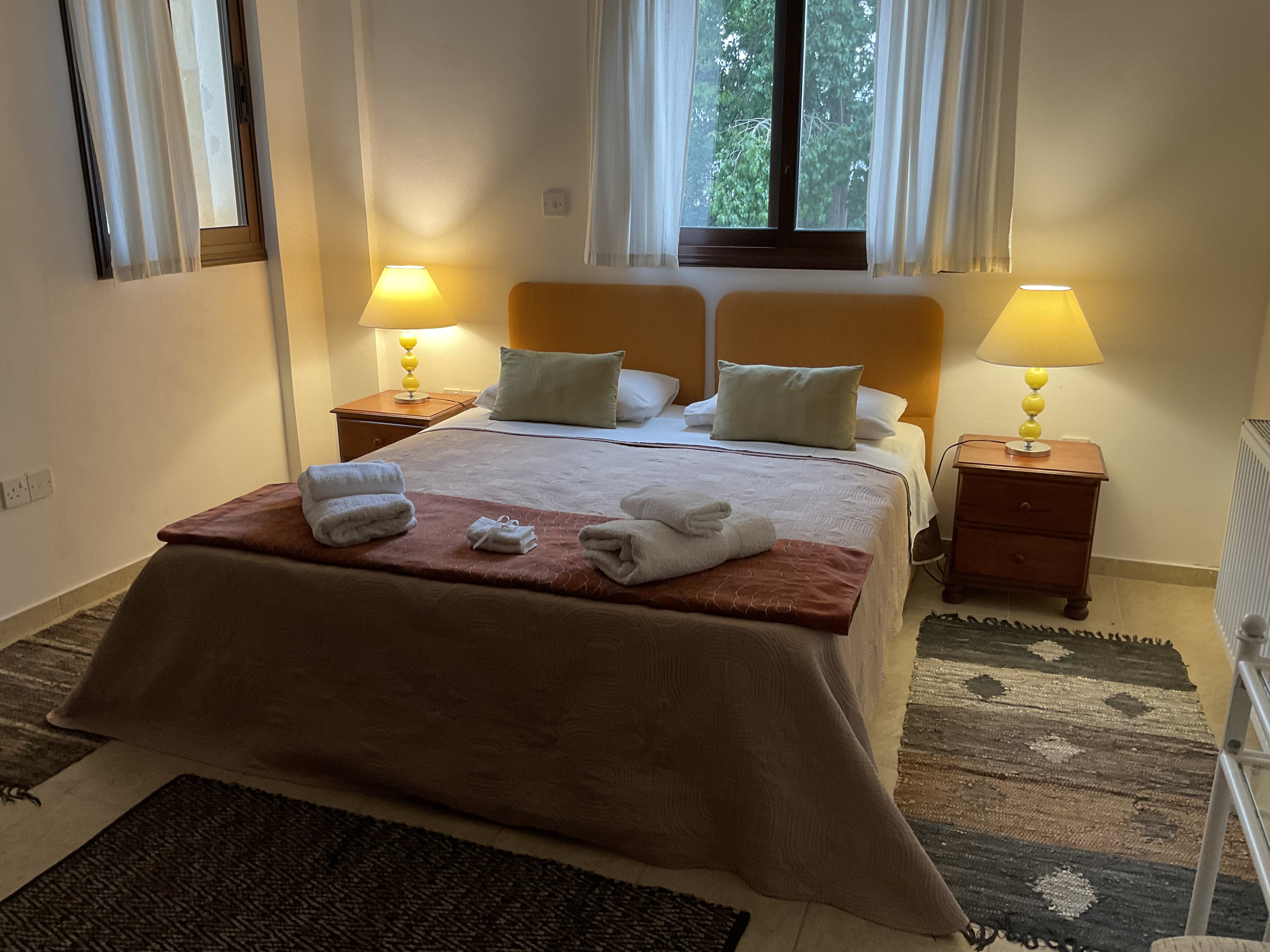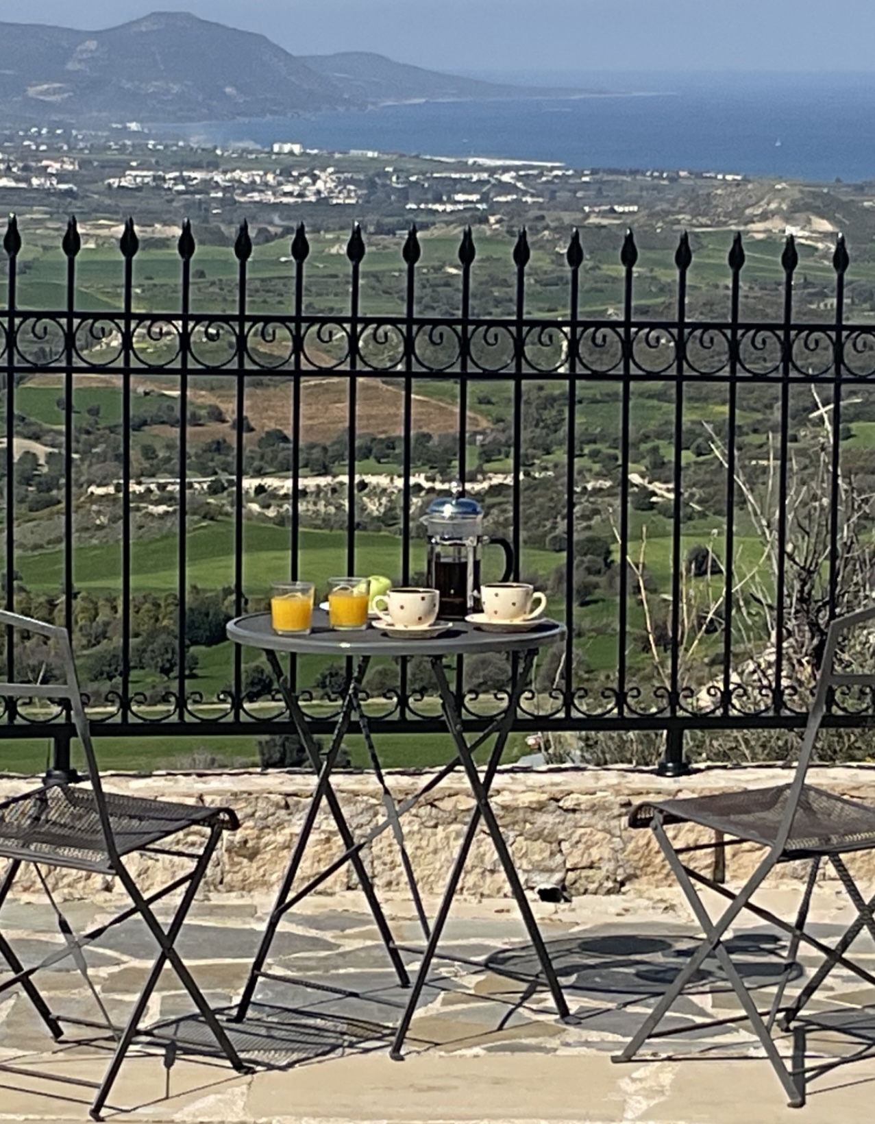 Villa Astéri is perched high on a quiet road leading from Steni Village to the Paphos forest and commands exceptional 180’ views over the citrus groves to the sea. There are no close neighbors and the villa is not overlooked in any way, so you can enjoy total privacy.