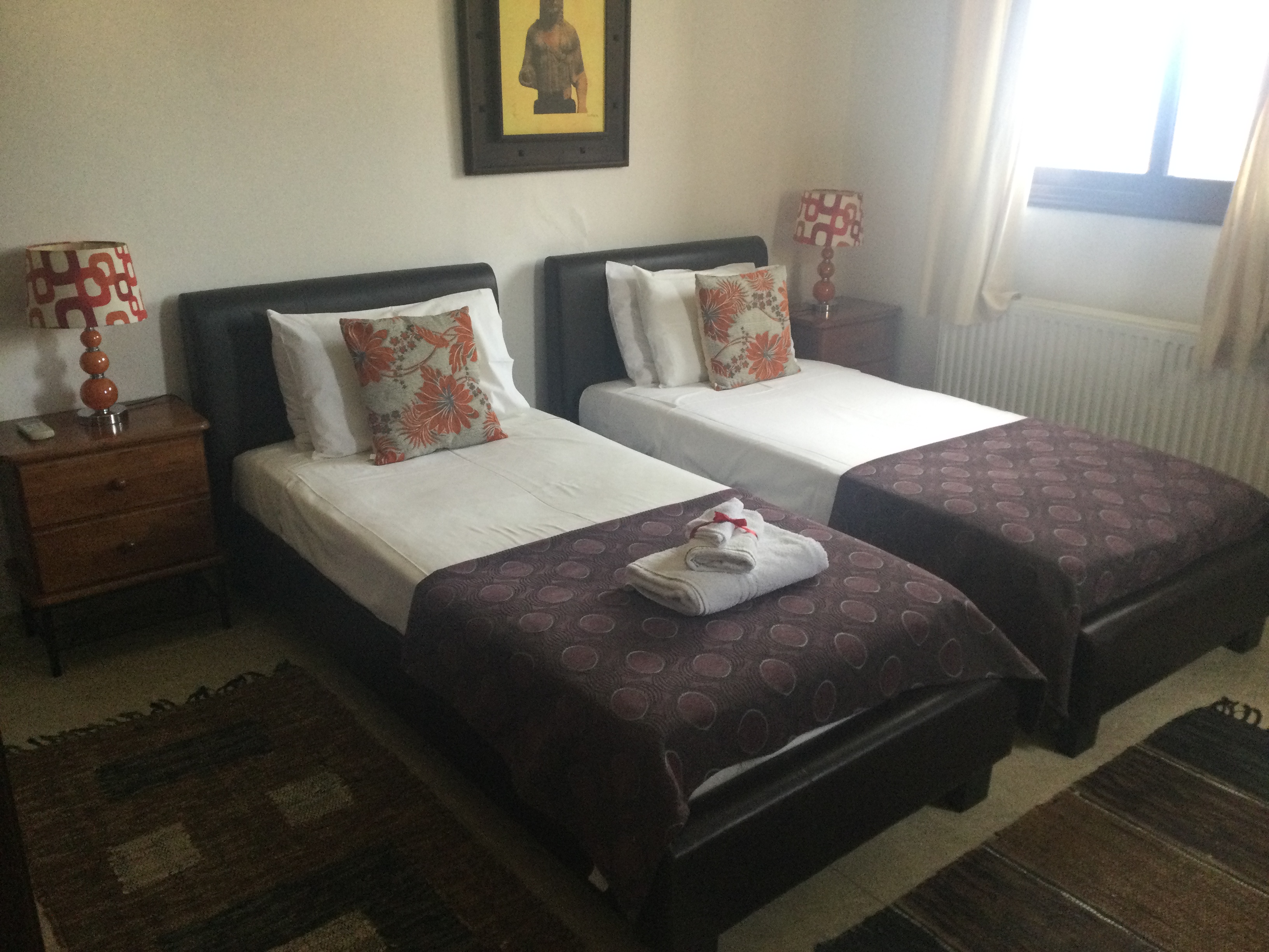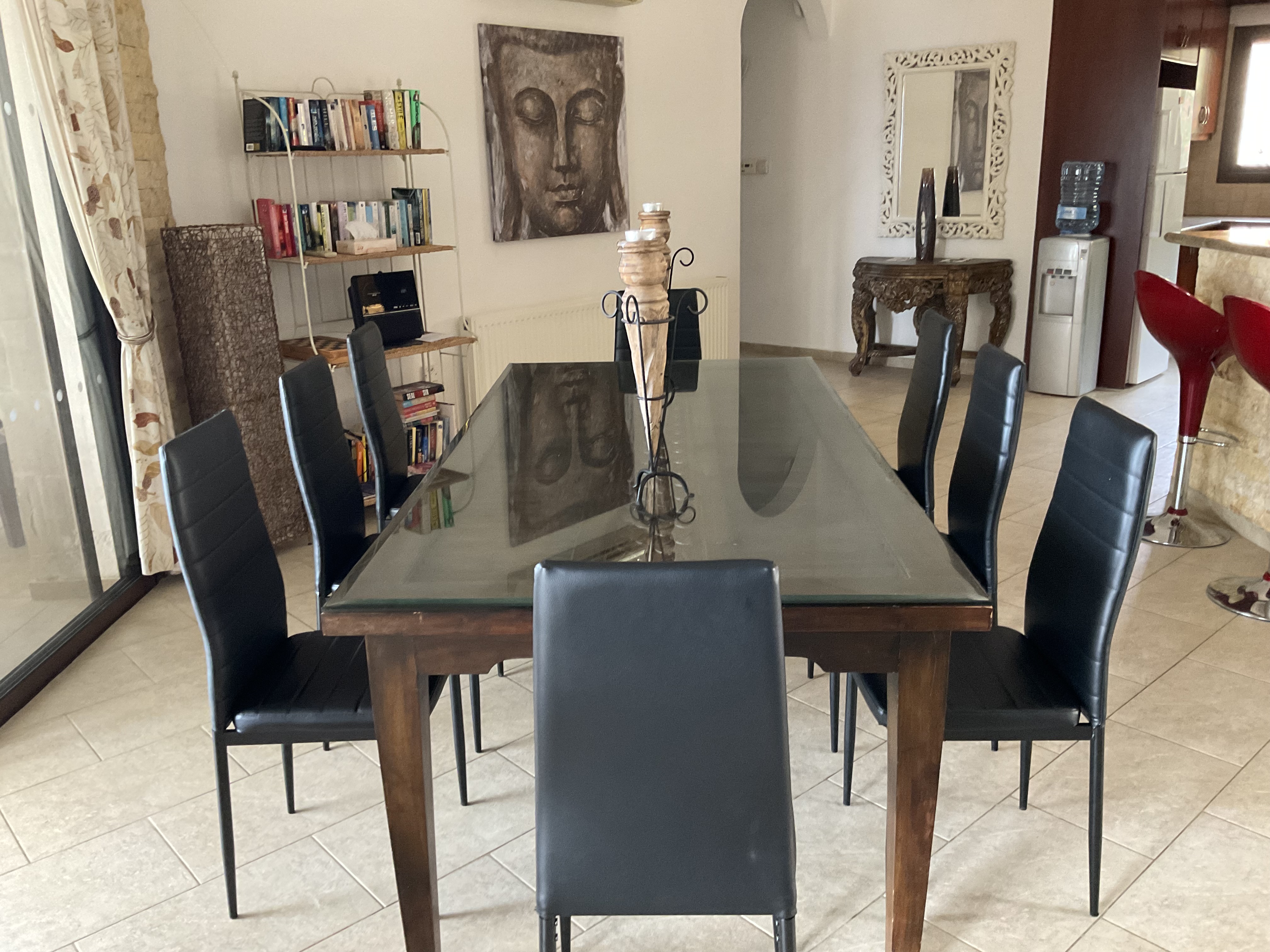 The villa is all one level, with two bedrooms/bathrooms one side, and two/three bedrooms and bathrooms the other side, with the living areas in the middle. Great for families or groups sharing. (we normally close one bedroom off for guest number up to eight)