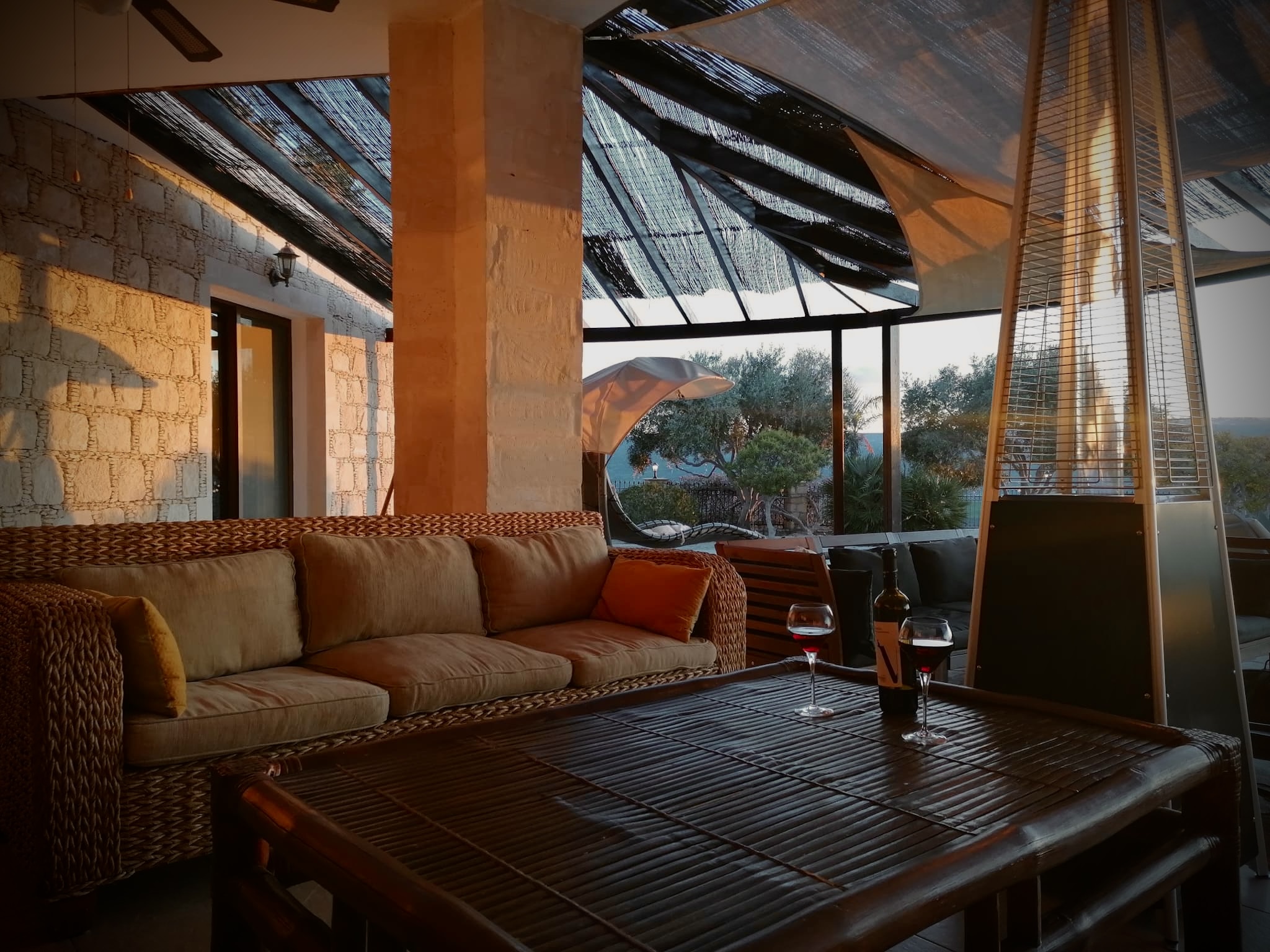 Watch movies under the stars on the large screen outdoor tv or perch on a stool at the outdoor cocktail bar and watch the sun set over the Akamas Peninsular.