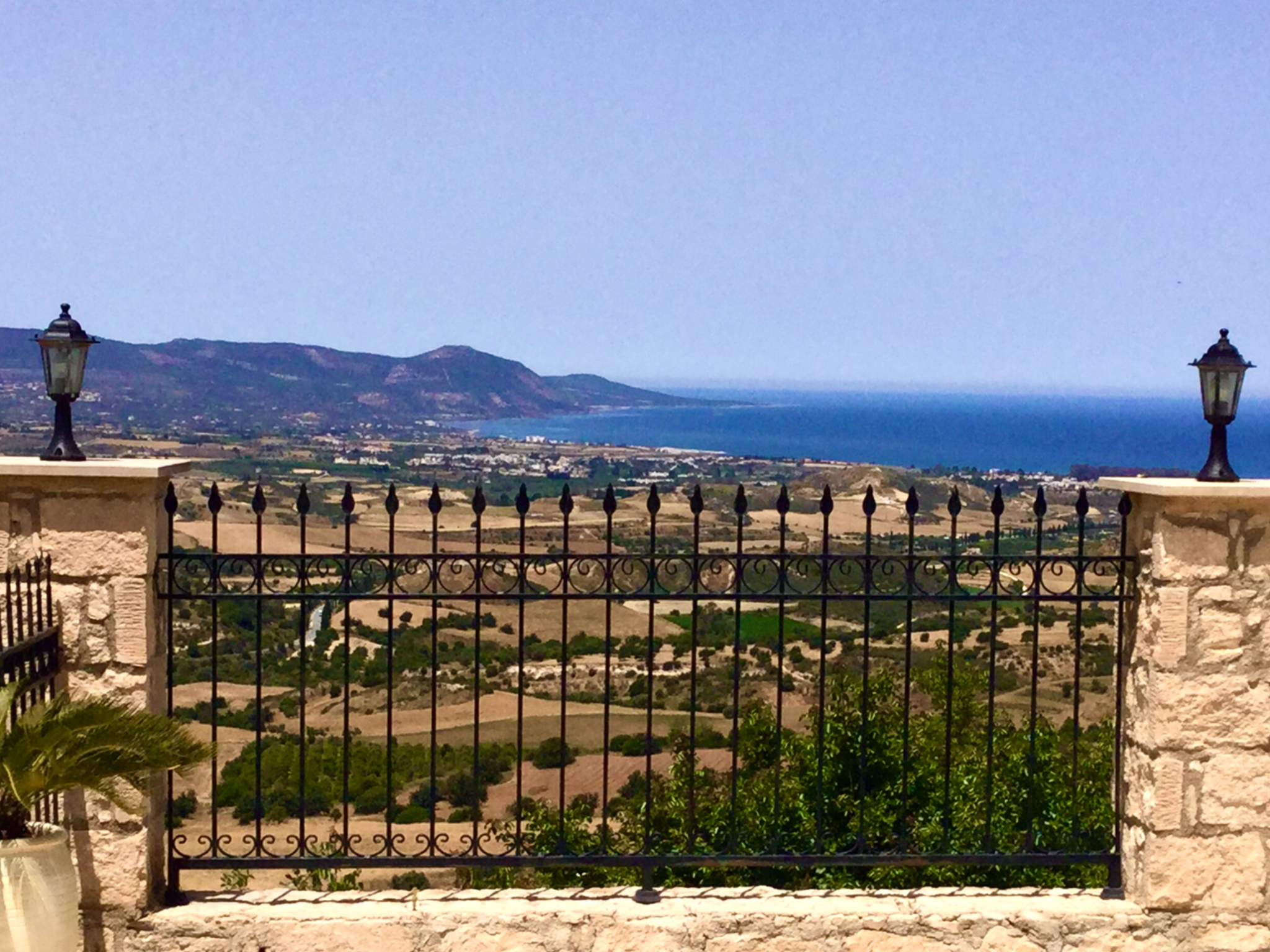 view over the pool and down to the sea and Akamas Peninsula
